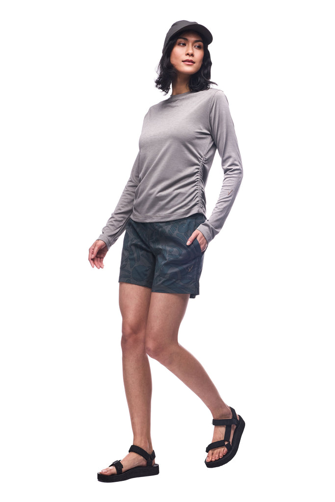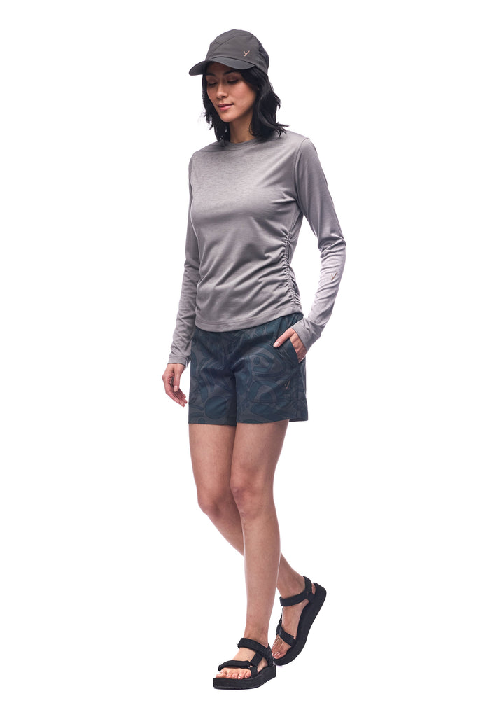 Every adventure collection needs the perfect lightweight long-sleeve tee, offering protection from the elements and curved ruching for the perfect fit.