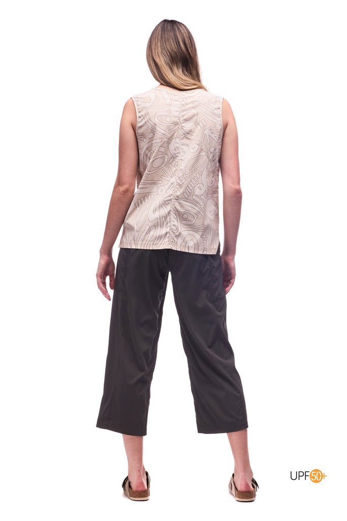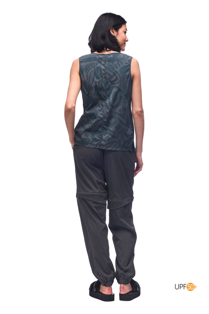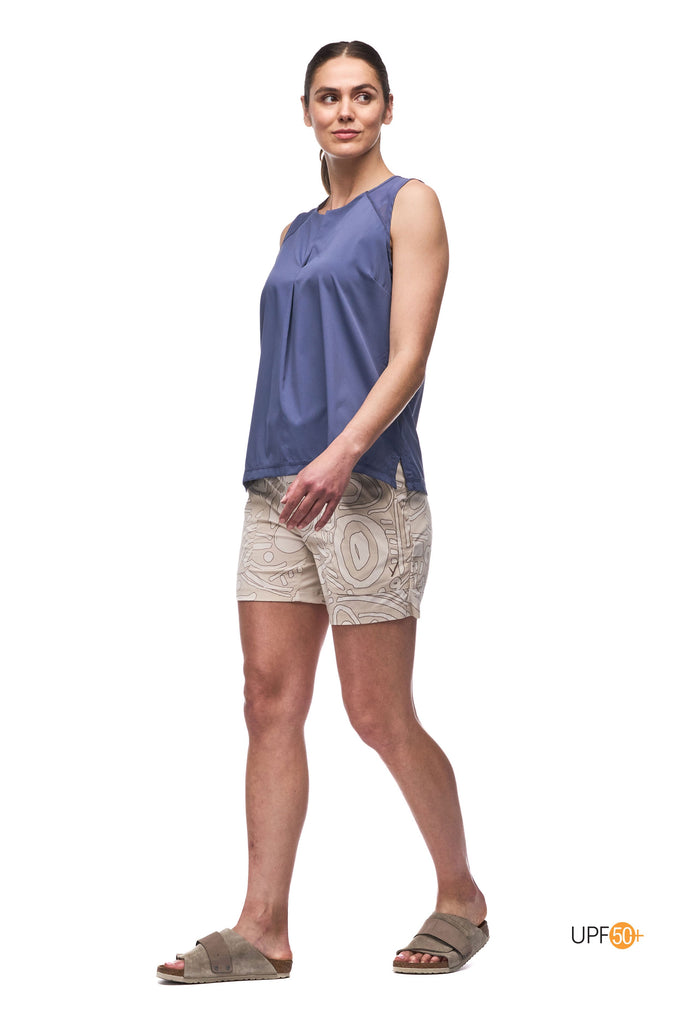 This airy top is perfectly weightless and trail-friendly by day, and stylish enough to take you into your evening.