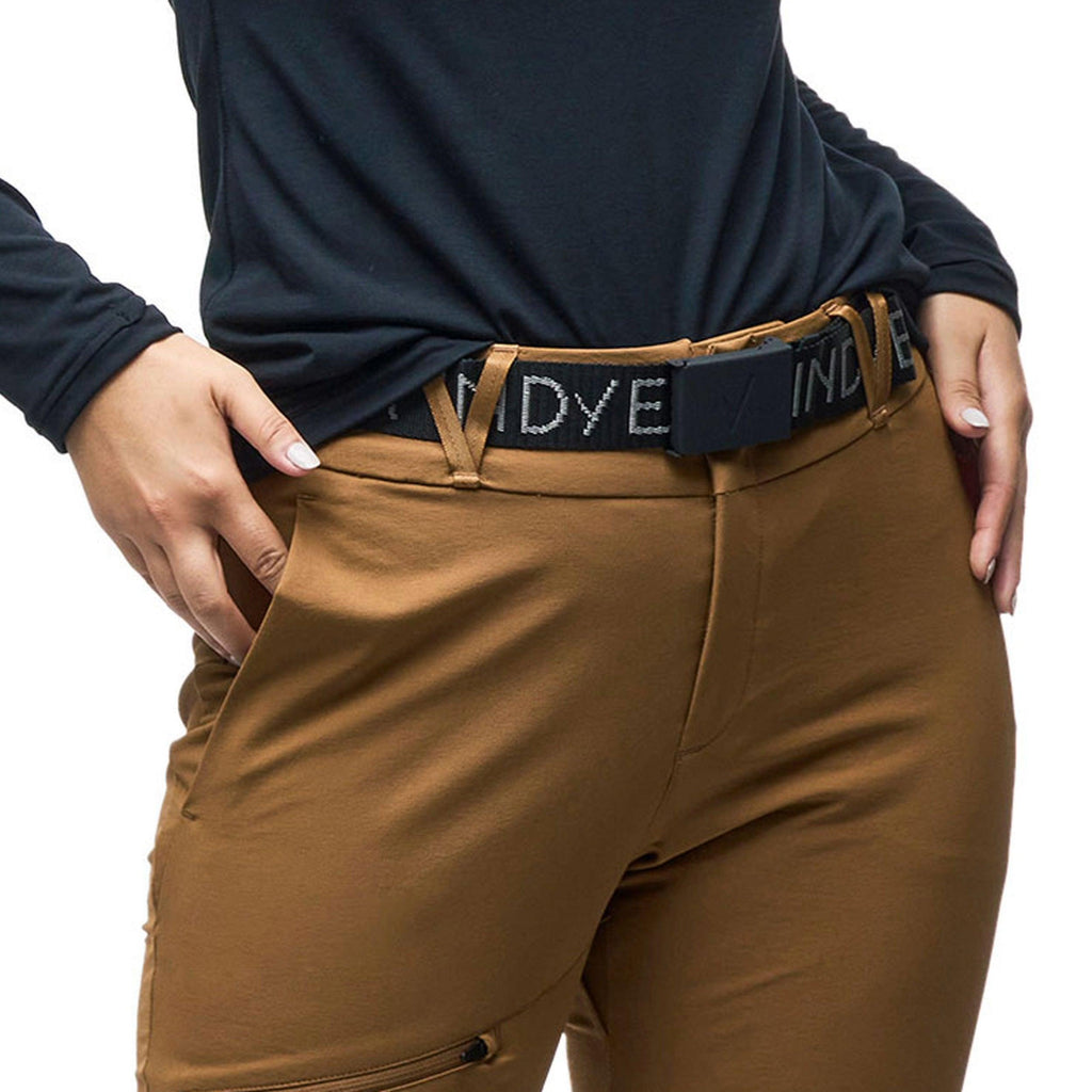 Belt made from solid and durable strap material featuring the Indyeva logo in intarsia