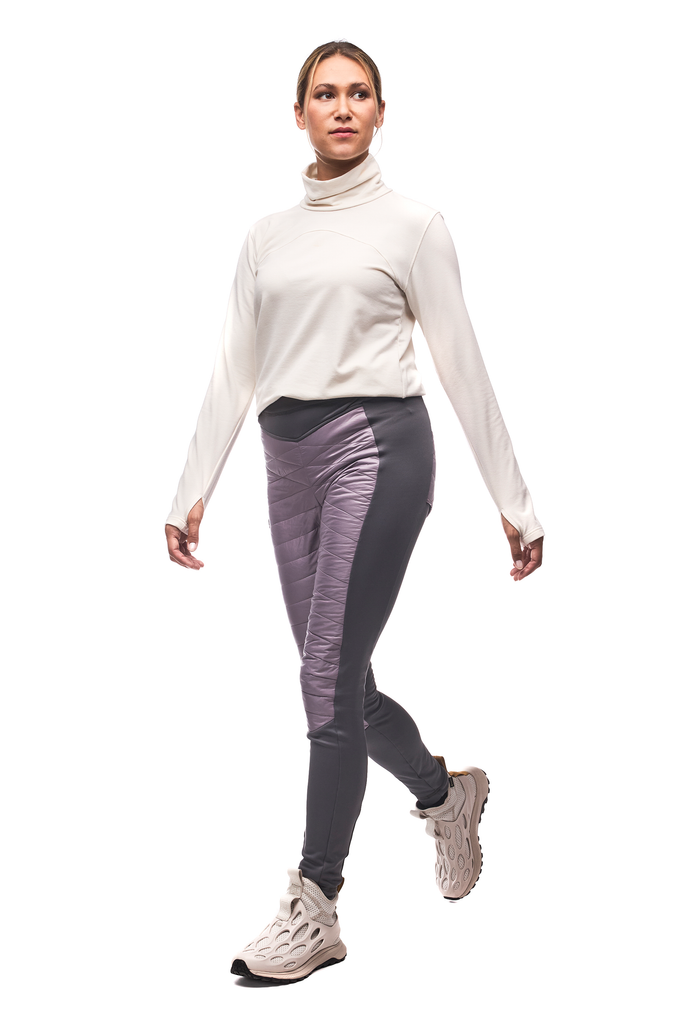 Slim fit pants with a high-waisted legging silhouette and strategically placed Primaloft™ insulation on the thighs and seat to keep you warm no matter what.