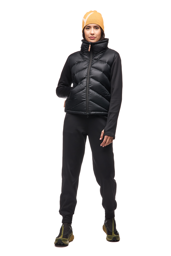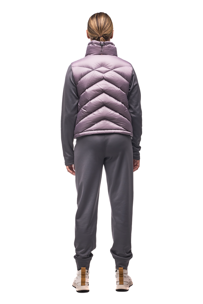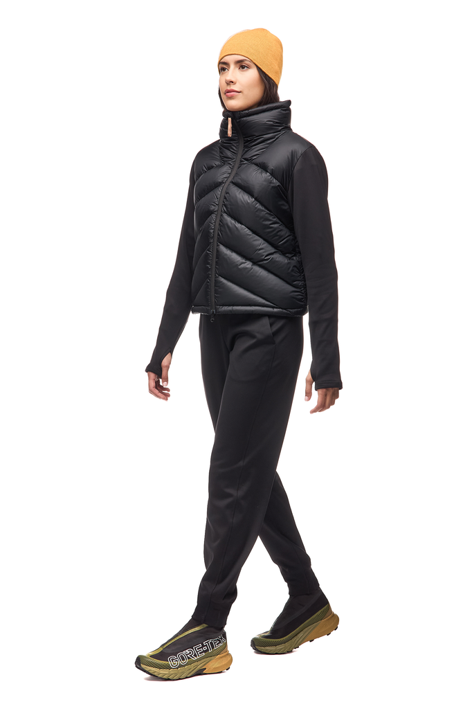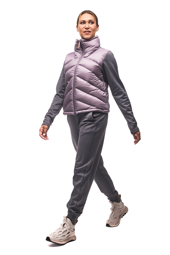 A versatile vest with dual design: the body is lined with RDS-certified down for warmth, while the KYWAD™ fleece knit sleeves offer full range of movement on the trail.