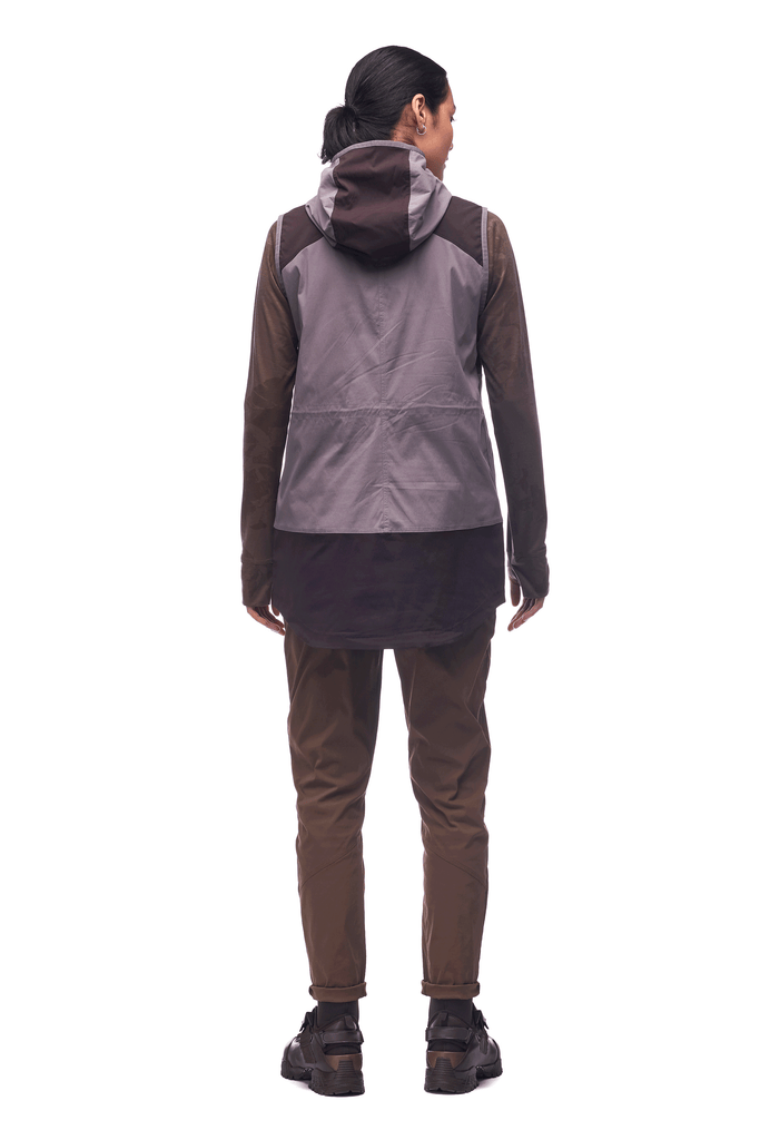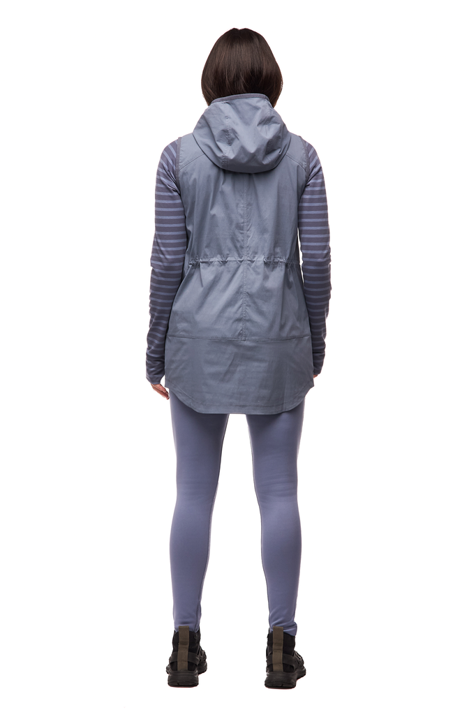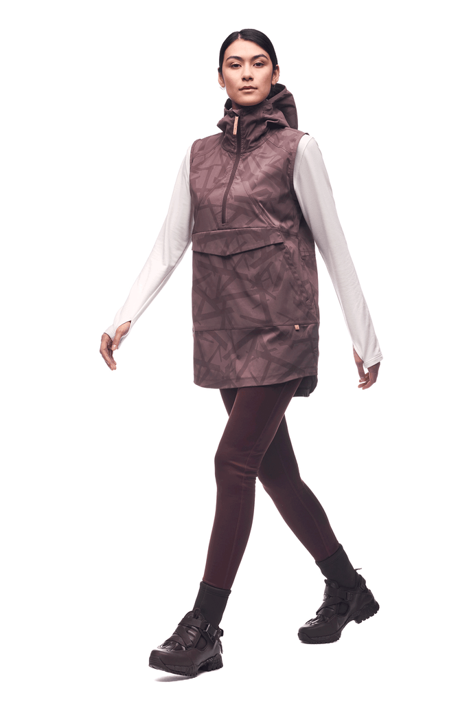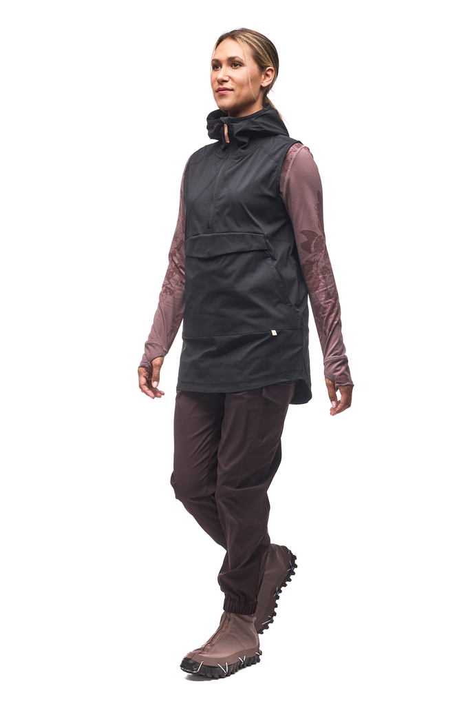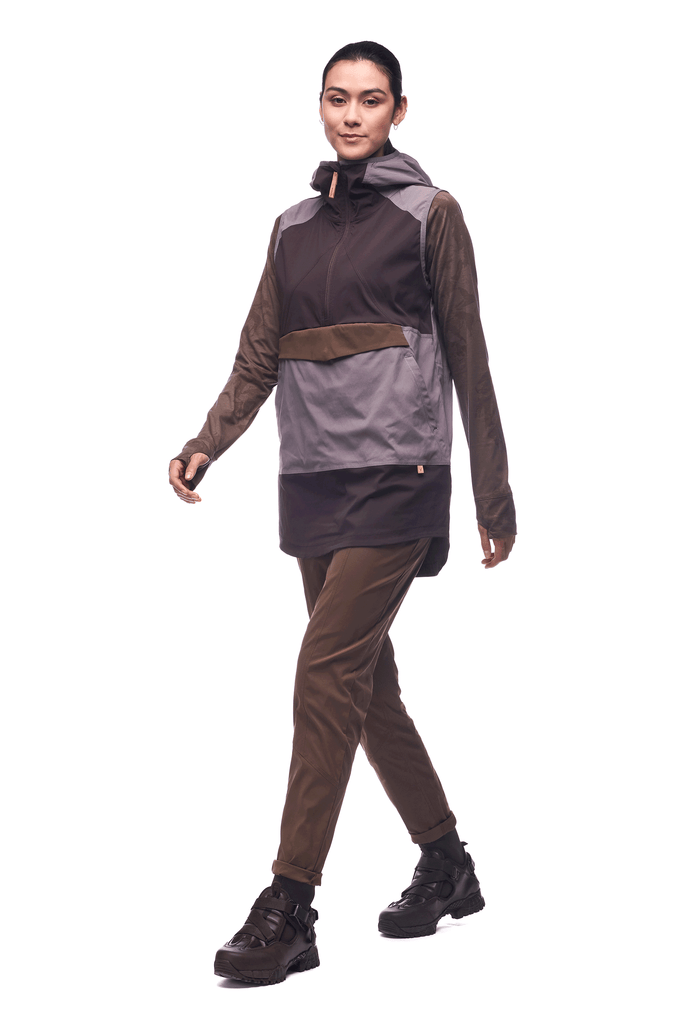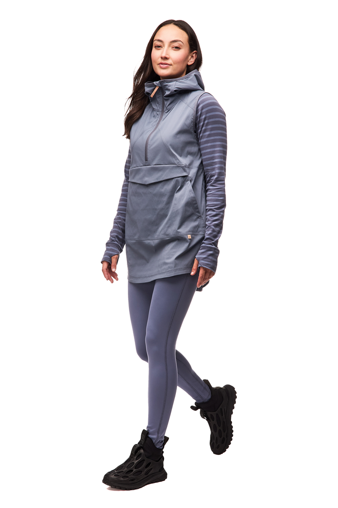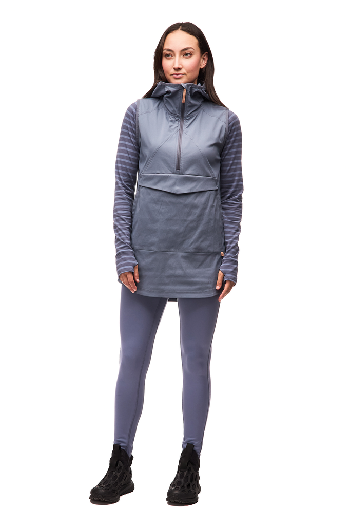 Hooded tunic with kangaroo pocket and secure pocket under flap.