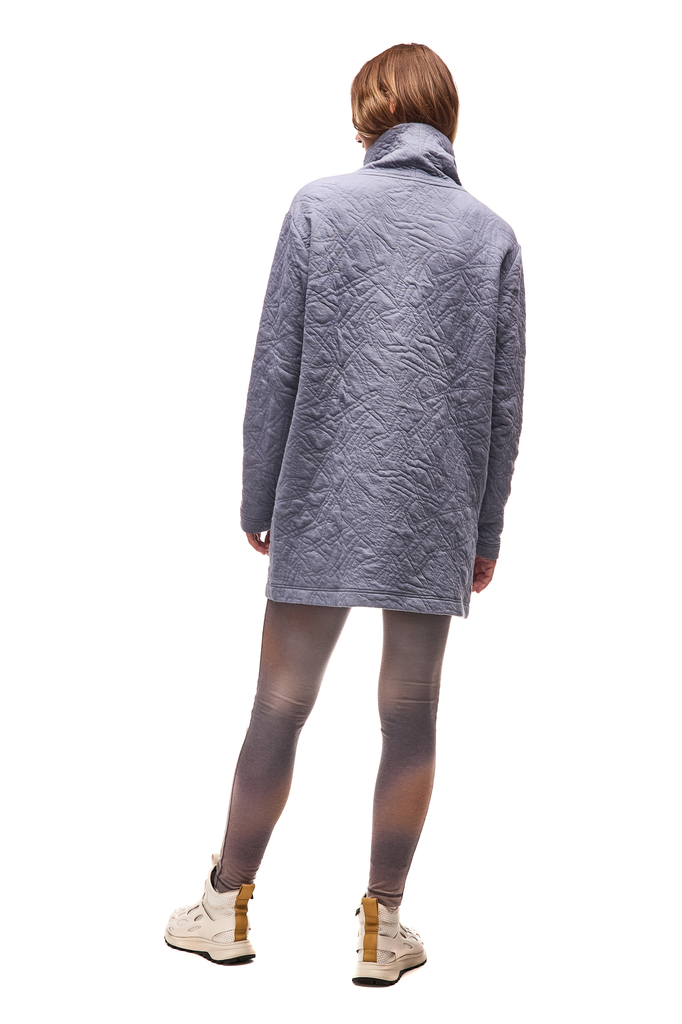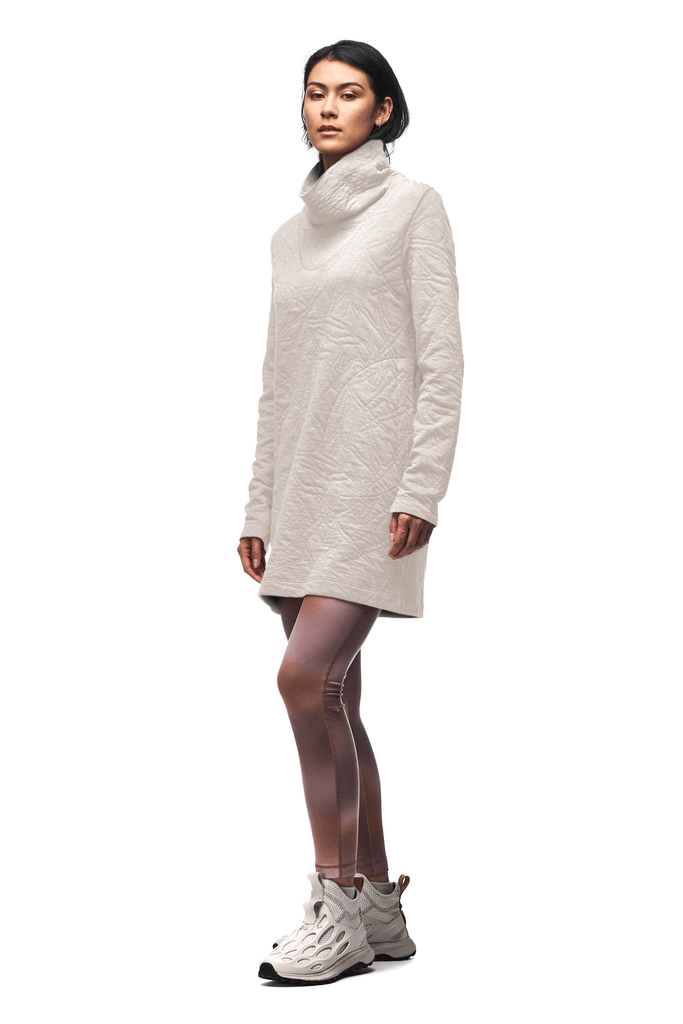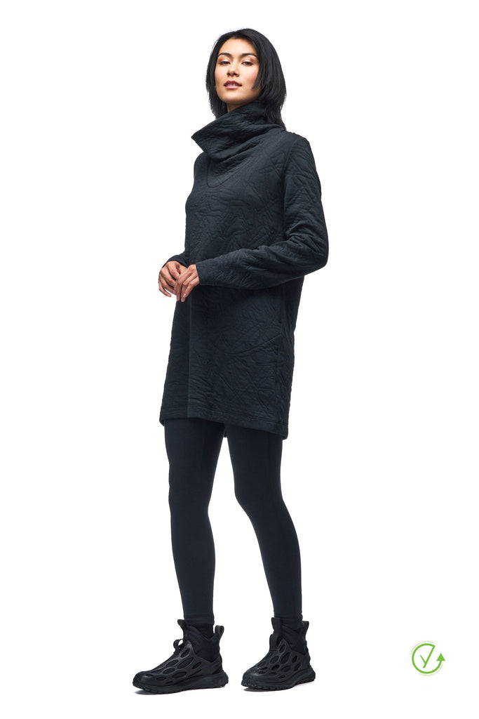 Long-sleeve turtleneck tunic with side pockets and a unique quilted pattern from 'Branches Indyeva'.