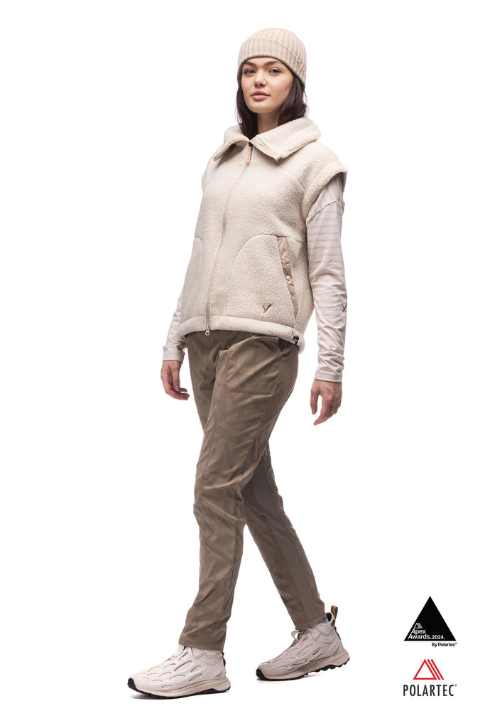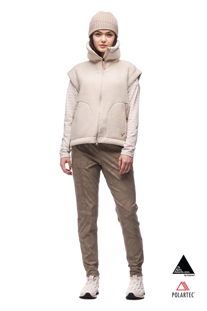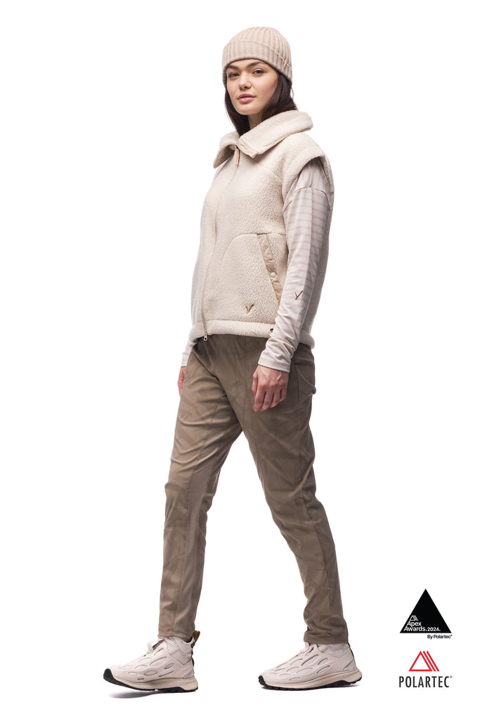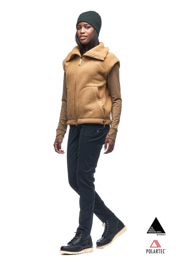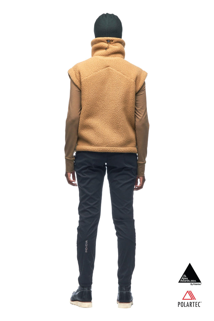 Lightweight and warm sleeveless jacket in Polartec® Shearling Fleece with taffeta inserts on the pockets for a distinctive look